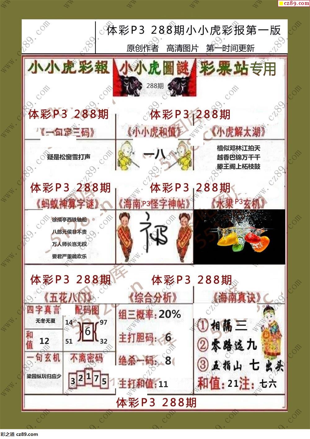 小小虎彩报288期体彩p3图谜